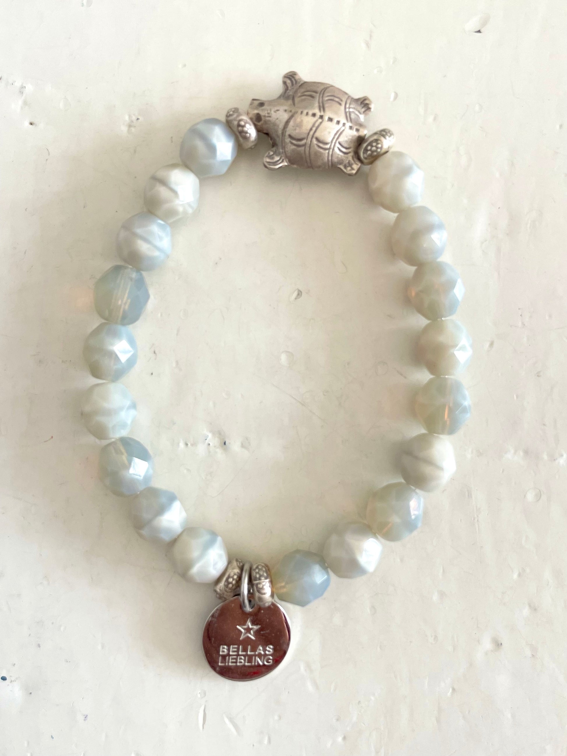 Die Armbänder sind auf Elastikband aufgezogen und passen auf Handgelenke mit einem Umfang von ca. 15-17 cm.