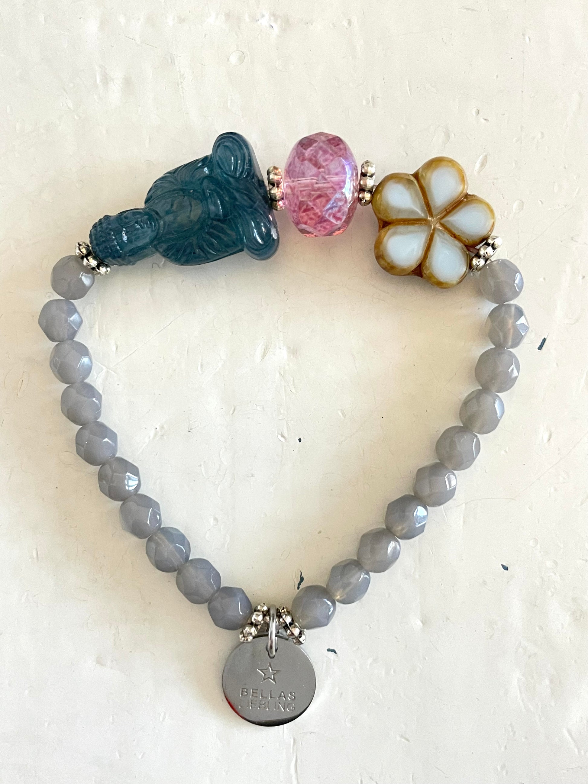 Die Armbänder sind auf Elastikband aufgezogen und passen auf Handgelenke mit einem Umfang von ca. 15-17 cm.
