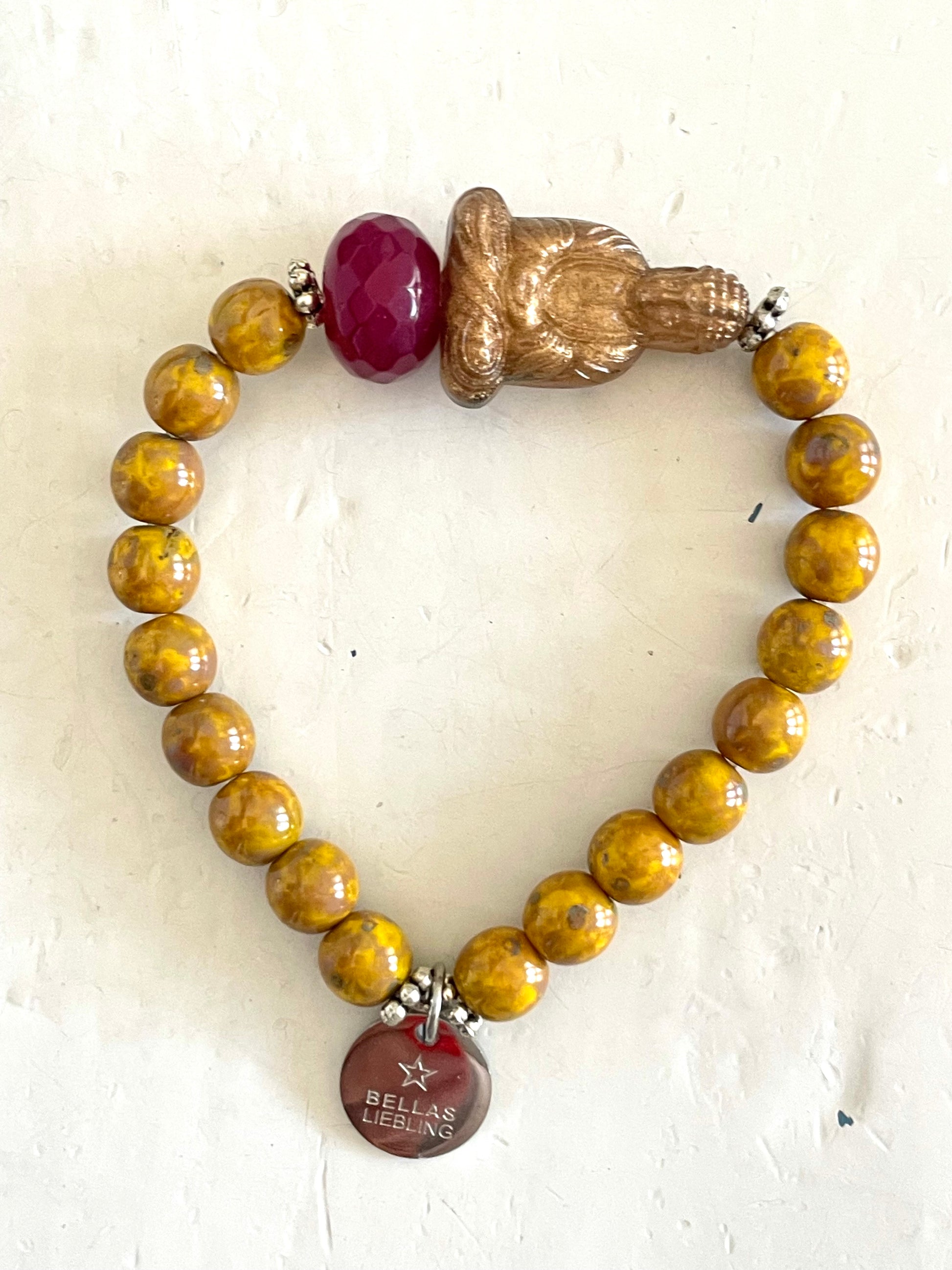 Die Armbänder sind auf Elastikband aufgezogen und passen auf Handgelenke mit einem Umfang von ca. 15-17 cm.