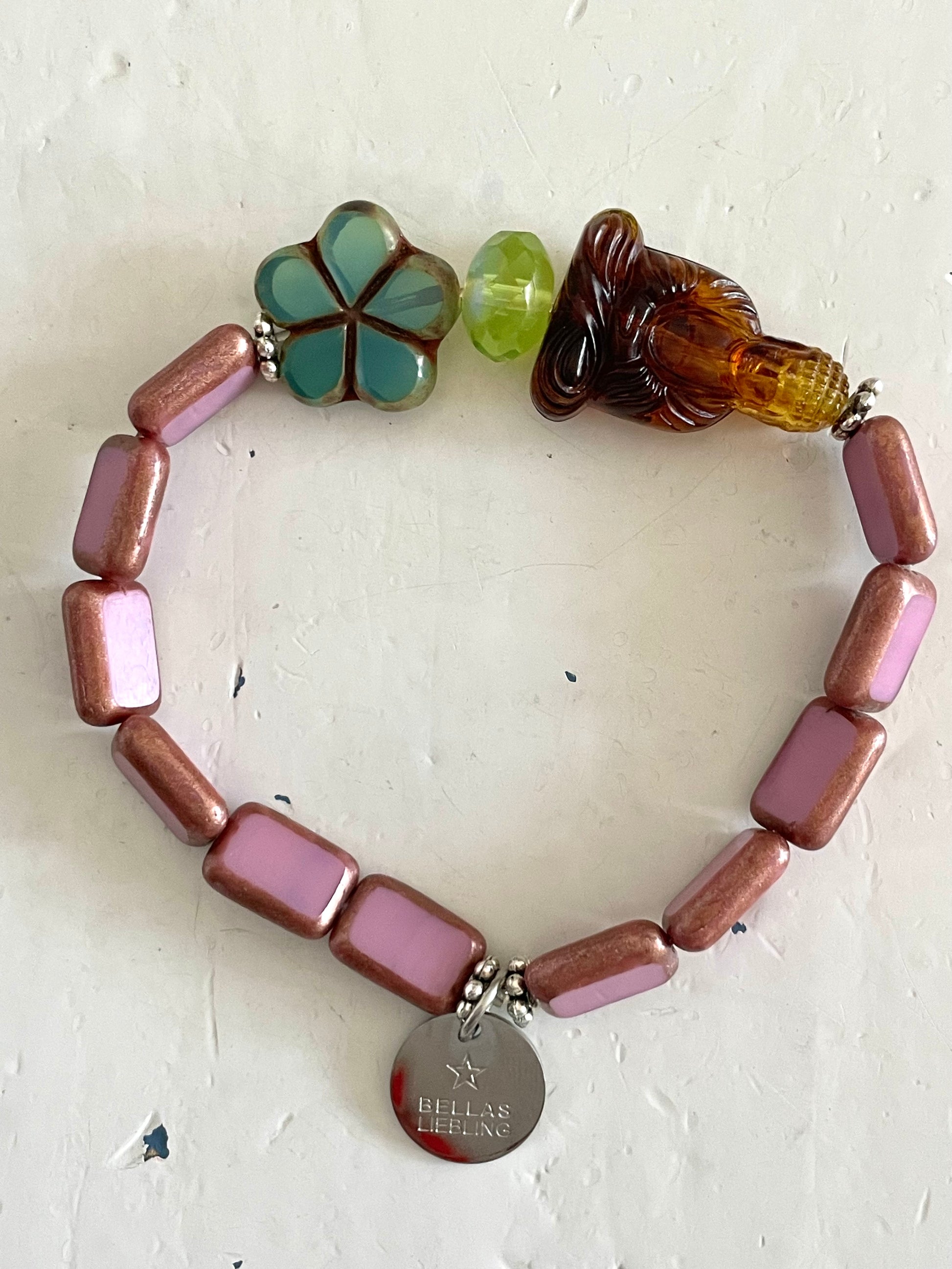 Die Armbänder sind auf Elastikband aufgezogen und passen auf Handgelenke mit einem Umfang von ca. 15-17 cm.
