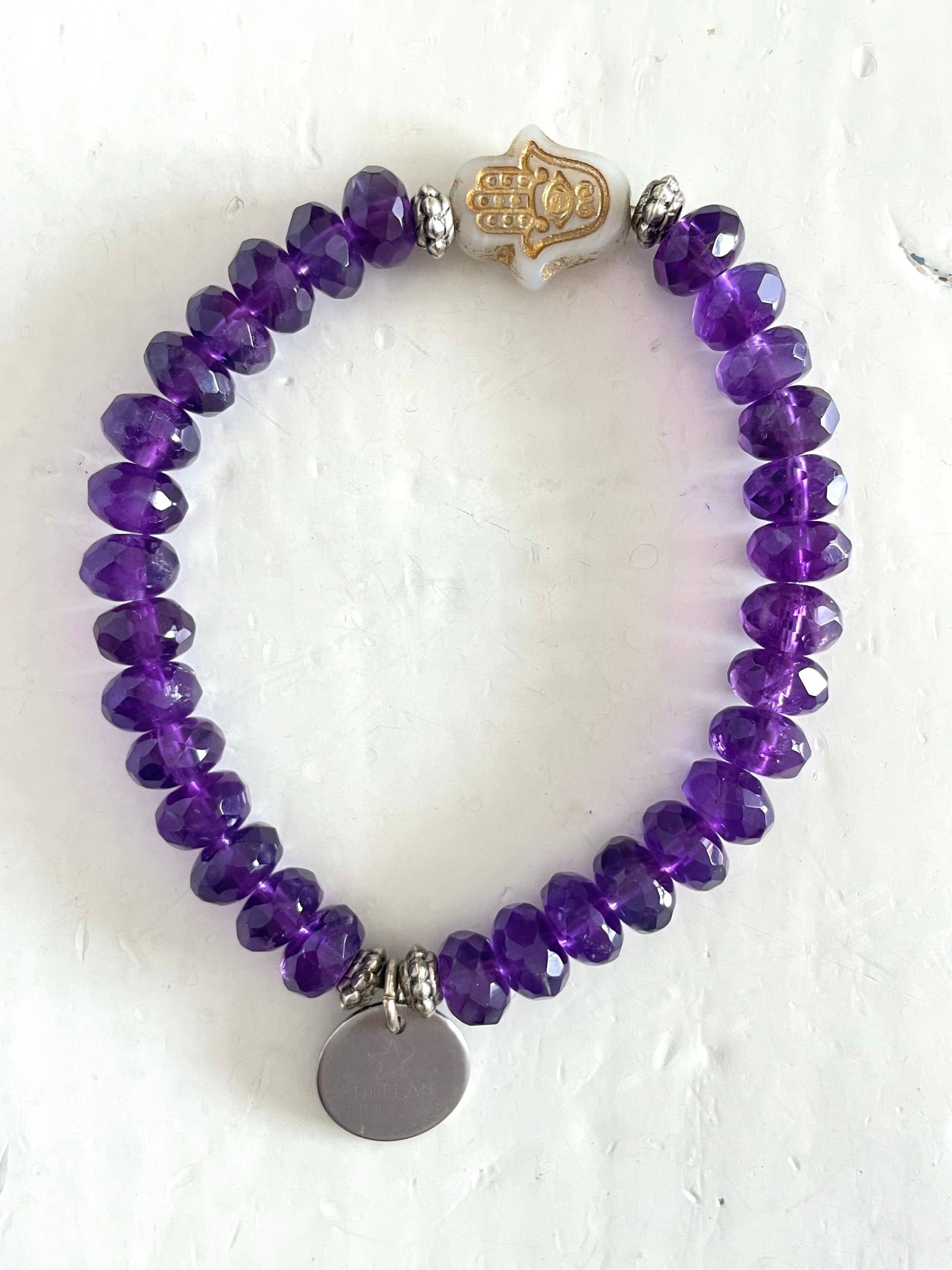 Die Armbänder sind auf Elastikband aufgezogen und passen auf Handgelenke mit einem Umfang von ca. 15-17 cm.